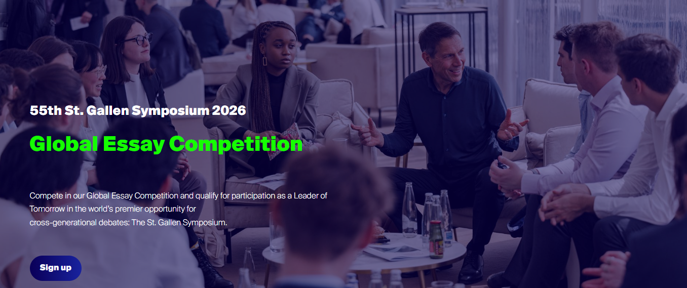 The Global Essay Competition is an offer for your Master’s and PhD students. The 100 best submissions will get the unique opportunity to participate at the St. Gallen Symposium in an all expenses covered trip to Switzerland and challenge the status-quo with their ideas.